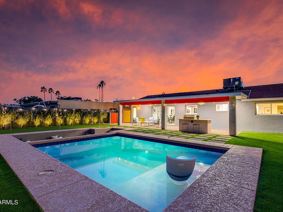As the sun sets, sip sundowners on your front courtyard with wood burning fire-place while taking in the Scottsdale Sunsets & gazing at the MOUNTAIN VIEWS. Dinner is served prepared in the most enviable black Signature Kitchen fully integrated with LG appliances. Take in a Family movie in the oversized Great Room.