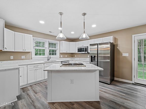 Completely remodeled 3 bedroom 2 bath brick home with over 1,800hsf in the county on almost 2 acres!! No restrictions!! This home has all new kitchen all new bathrooms, all new wiring to include electric panels, new HVAC, all new plumbing, new floors, new paint, new light fixtures, New - New - New!! Driving up to the house the split rail fence out front makes this feel like home. The covered front porch is perfect to watch the kids play or cars go by. Stepping inside the home you'll notice the new LVP flooring and farmhouse light fixtures and around from the foyer is the huge living room that just invites all that enters. The first thing that you see is the huge fireplace with recessed accent lighting and built-in cabinets on both sides. The living room is open to the luxury kitchen with a Kitchen Aide down draft stove in the island and granite counters through out. The cabinets all have slow close drawers and doors completed with stainless steel appliances. The formal dining is right off the kitchen with a nook perfect for that hutch. The kitchen is laid out perfect for entertaining. Moving into the hall is a half bath with the laundry room, then down the hall is the master bedroom. The master suite is complete with it's own full bath equipped with a dual vanity, walk-in shower with glass doors and a huge walk-in closet. At the end of the hall are two other large bedrooms and a large guest bath for the kids. Outside there is a large shed that is perfect for the lawn equipment and 1.819 acres to roam and enjoy! This home is between Jacksonville and Richlands so it is close to shopping and local bases! Schedule your tour today to see all that this home has to offer!