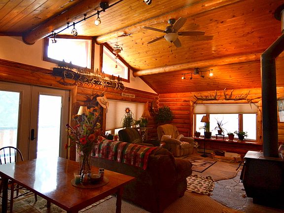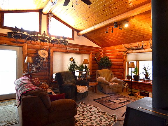 Custom Log Home nestled in the trees and close to town makes this home a unique oasis. Many custom upgrades enhance the interior and exterior making it a pleasure to come home to. The 13 zone underground sprinkler system makes the 5+ acres of landscape absolutely beautiful! Walk out Basement finished for additional space. Large garage with custom built in cabinets and a loft space with a walkout balcony. Call us today to schedule your personal showing!