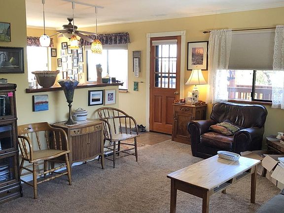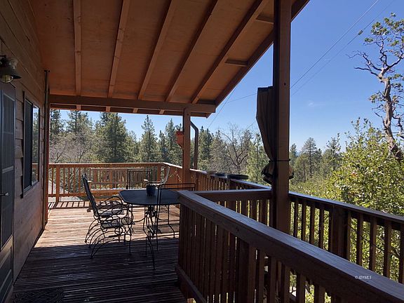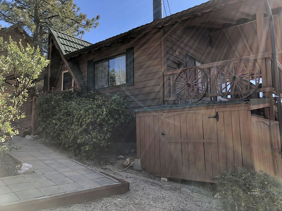 Rustic mountain retreat where deer roam free, the air is clean and there are 180 degree views for miles! Ideally situated to offer a feeling of seclusion with the Southridge, Ernie Maxwell and May Valley trail heads right down the street. This cozy cabin has been meticulously maintained and features all the bells and whistles including a large deck wth vaulted cover that wraps around overlooking the fenced yard. The wagon wheels, split rail fencing, hand hewn Manzanita railing and custom woodworking throughout welcome you. Enter to a living room with woodburning insert with custom mantle & brick hearth , an open Kitchen and dining area with a door to the inviting Deck - perfect for entertaining. There are 2 nice size bedrooms with ample closet space and an updated full bath in the hall. A slider opens off the primary bedroom onto the covered deck and laundry room. Never fear the elements as you are covered going downstairs. You'll pass a whole house Generac generator on your way to the Studio apartment that is complete with a full bath. There is a workshop, an additional storage room, central heat and air conditioning, fenced yard, additional parking for boat/RV and a storage shed!