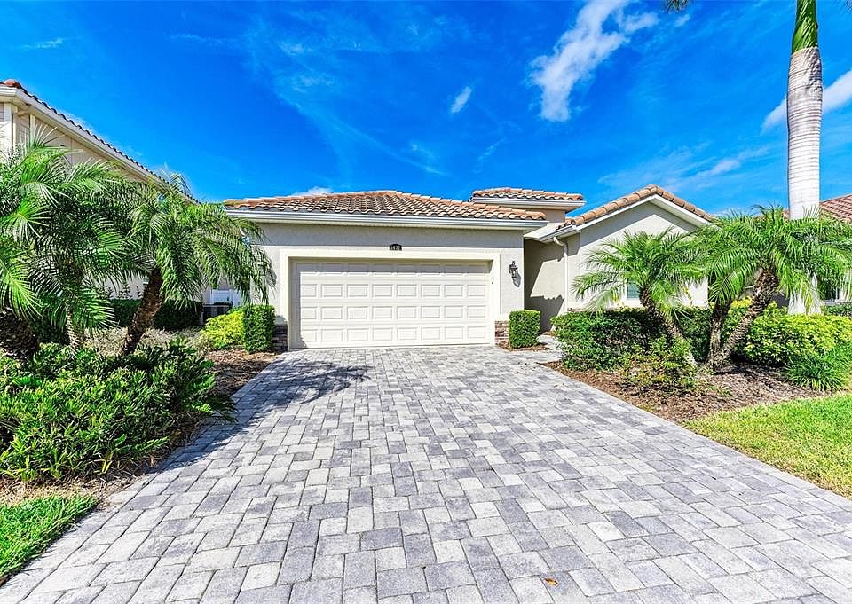 HOME WITH A HALO...This amazing property makes it easy to find your "place in paradise!!!" Located just minutes from SIESTA KEY offering white sandy beaches (known worldwide), warm Gulf breezes and Spectacular Sunsets nightly! Features include: A kitchen the family chef will love with 42" Espresso Cabinets, Coastal Shale Granite counter tops, a Walk In Pantry, Stainless Steel Appliances (of course) and a breakfast bar that seats six. The Open GREAT room floor plan is ideal for the casual lifestyle you're sure to enjoy here in the southland and is the perfect place for family gatherings or fellowship with new found friends. The spacious Master Suite offers newer Luxury Vinyl Plank Tile, is big enough for a KING SIZE bed and features Hers and Hers walk in closets, an ensuite bath with twin sinks, private water closet, a full size shower and a soaking tub where the stress of the day will melt away. Two guest bedrooms (one with a semi private 1/2 bath) are great for over night guests who are sure to drop in when old man winter is howling back home. The PRIVATE SEPARATE DEN/OFFICE featuring mahogany engineered hard wood flooring is perfect if you're not quite ready to retire or if you're working remotely from home. The screened lanai overlooks a peaceful water feature and is the perfect place to enjoy a morning cup of coffee or a glass of your favorite wine at the end of another relaxing day. Luxury Upgrades include: Crown molding throughout, 18" Sunset Grey ceramic tile, Leaded Glass entry door, Plantation shutters, Newer A/C, attached two car garage and did I mention this property is located in a prestigious GATED COMMUNITY. There's a "tot spot" for kids or grandkids and the schools for this neighborhood are some of the best in the county. If you're looking for the convenience of just moving right in this property can be FULLY FURNISHED. The Sarasota area boasts exquisite fine dining, theatres, museums and an International airport with connections to almost anywhere. This on "ticks all the boxes" so CALL TODAY and start home tomorrow!