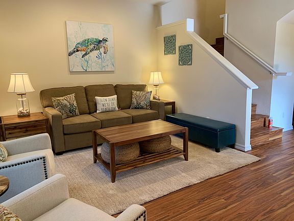 Show up and relax! Available for 1 - 3 months. Fully furnished home, utilities included! This home offers private entry and private two car garage. The property offers comfort, ease and luxury in a gated community. The open floor plan with 3 private bedrooms and 2.5 bathrooms allow family and friends to enjoy time together or relax in the privacy of a comfortable room. Your very own 150 sq. ft. lanai is a serene place to enjoy morning coffee and evening cocktails. Huge south facing windows and 9' ceilings allow you to bring the outside in. Making meals and dining together will be a pleasant experience with a fully equipped kitchen and dining table with seating for 6-8 people. Step onto the lanai to enjoy the gas BBQ. Stroll to any of the restaurants within walking distance including Merriman's, Sea House, Gazebo, and Kitchen 5315. You will be ready to hit the beach with ease as you load up your personal beach wagon with boogie boards, beach chairs, sand toys and more! Step across to the beach to enjoy breathtaking views of the sunset dropping into the ocean between the islands of Molokai and Lanai. Unwind after your day and sleep peacefully in the comfort of the cool trade wind breezes or central air conditioning. NOTE: Master Bedroom - California King Westin Heavenly Bed Guest Bedroom #1 - Queen Size Bed Guest Bedroom #2 - King Bed Westin Heavenly Bed 2 baths Master bedroom has a Westin Heavenly California King size bed by Beautyrest for your sleeping comfort, a 50" Samsung Smart TV and an en-suite bathroom with a walk-in shower with double shower head. The first guest bedroom has a comfortable queen size bed The second guest bedroom has a Westin Heavenly king size bed by Beautyrest. The guest bathroom upstairs bathroom is a tub and shower combination. Downstairs there is a half bath off of the kitchen / dining area for your convenience. The living room features a comfortable seating area and a 75" Samsung Smart TV for your streaming entertainment. High-speed internet allows you to seamlessly connect your devices and go! Kitchen: Dishwasher, stove, refrigerator, oven, microwave, grill, coffee maker, coffee grinder, toaster, blender, rice cooker, ice maker, crock pot, dishes, utensils and flatware. Dining room: Seats six guests around a beautiful hand-carved bamboo table. Lanai: Relaxed seating in a comfortable outdoor setting and Gas BBQ Grill. Hit the Beach: Provided it the home are beach chairs, boogie boards, beach toys, umbrellas, cooler and beach wagon. Entertainment: 75" Samsung Smart TV in the living room, 50" Smart TV in the master suite, cable, games, cards, board games, beach toys, Wi Fi and internet. Safety Features: gated community, smoke detectors, dead bolt lock, fire extinguisher and exterior lighting. General amenities: Central Air Conditioning, washing machine and clothes dryer in the garage, internet, cable, all linens provided, iron and board, hair dryer, queen air mattress, free parking, two car garage. Utilities included. Renter is responsible for taxes and one time cleaning fee of $350 for move out clean. No Pets. No Smoking.