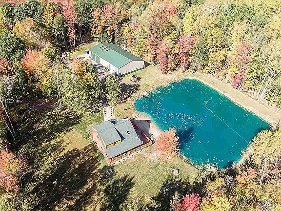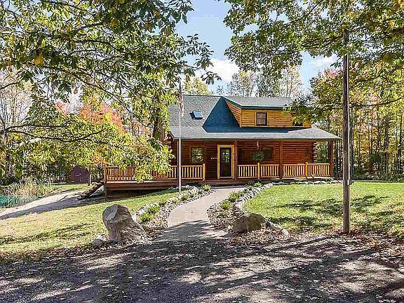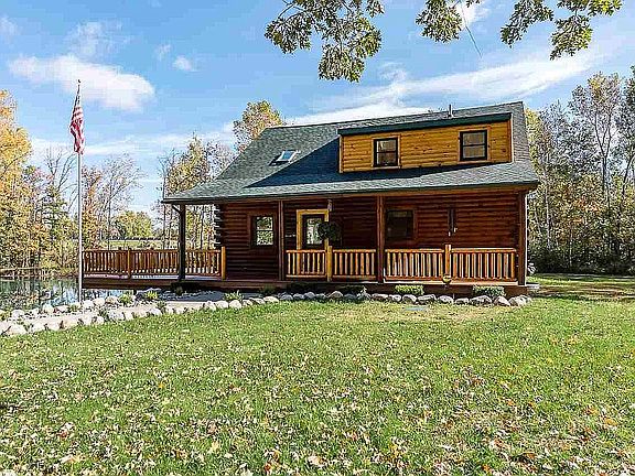 Log home as seen on better homes and garden on just over 13 acres. Allow yourself to enter a one of a kind log home built by Golden Hill log homes. A perfect his and her home where rustic meets modern! Completely renovated. Beautifully tiled fireplace. Hickory cupboards and granite counter tops throughout. Brand new carpet and hickory flooring. Stainless appliances and under mount stainless kitchen sink. Custom designed master shower with dual shower controls with panoramic glass doors, Master walk in closet, custom tiled main bathroom shower. All new doors and windows throughout. Led lighting throughout. Extreme weather package spray foam insulation, osb, roof and skylights. Dual French doors leading to your wrap around deck with two covered porches including a hot tub on the back porch for the complete getaway feeling. All new rustic railings and log steps. 2 n s sand for the beach leading to and dual aerated pond about 25 ft in depth. 50x90 heated and insulated true 6 inch cement floors which are tapered to a drain for washing. Bathroom in the barn already plumbed for a shower to be installed. 1 1/2 inches of foam in the walls between the pearlings then 4 inches of spray foam closed cell over top. 2 inches of foam under the cement in barn and on skirt boards, plastic vapor barrier on the ceiling, 30 inches of blown in attic cat fiber glass insulation in ceiling, Everything was done above in beyond! There is a 4 inch tube that runs from the barn to the house with nothing in it in case anything ever needed to be added such as internet or phone lines etc. Electrical outlet on every pole in the barn on separate circuits. 220 welder plug. Outdoor security cameras are installed and operating. Wood stove heats the barn, floor in barn, house and hot water in house. If choosen not to use wood for your source of heat, the barn could easily be heated with a hot water heater via electric or propane. Large yard! The driveway has about a foot of crushed asphalt. Apple trees, black cherry tree and pear trees in the fruitful orchard out front. Brand new water softener and chlorinator for the well. New well pump. Septic tank has been cleaned yearly due to owning a septic company and has a riser on for easy servicing. A place to plug in a Rv! Upon sale holding tanks, dirt mounted and sign will be removed! This home has so many beautiful and unique features along with great opportunities. This home is up high and dry on large sand ridge! 989-205-6017 NOT WILLING TO RENT OR SELL ON LAND CONTRACT.