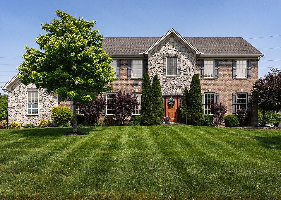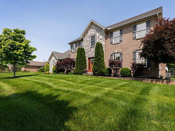 Welcome to this incredible home in Lakota Schools. Stunning curb appeal with the stone and brick exterior and beautiful landscaping. Hardwood flooring and carpet throughout and open layout. Gas fireplace, crown molding, and huge bay windows in the family room. The kitchen features ample cabinetry, stone backsplash, stainless steel appliances, double oven, built-in stove top, and gorgeous dark granite counter tops. Beautfiul crown molding, wainscoting, and large windows in the dining room. Dedicated laundry room and a bonus pet room/project room/office. Ceiling fan and light fixtures in every bedroom. Awesome secondary bedrooms feature beautiful wallpapers, accent walls, and a large shared bathroom. The master suite features a gorgeous board and batten style wall molding, vaulted ceilings, dark accent wall, MASSIVE walk-in closet, double vanity bathroom, huge window, and gorgeous walk in shower with double shower heads. The incredible finished basement features an accent wall, mini bar with stone backsplash and beverage cooler, large theatre style projecter and screen, home gym, full bath, and bonus room. The basement measures 840 finished square feet. The huge fenced backyard boasts a huge covered patio with ceiling fan, bar, mini fridge. You'll also love the heated saltwater pool, fire pit, and play set! This home checks all the boxes and more. You'll be the hit of the parties and barbeques for years to come.