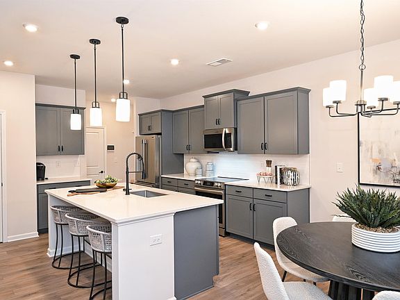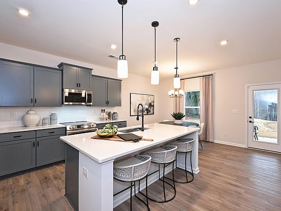 One of our top-selling plans, the Harrington at Crosswinds at Cedar Creek features a massive second-floor owner's suite, privately tucked away on the same level as its three additional bedrooms. The first floor impresses with an open-concept family room, breakfast nook, large center island, and BONUS STUDY! Plus, upgraded kitchen cabinets with crown molding, kitchen backsplash, and granite countertops. PHOTOS ARE REPRESENTATIONS!