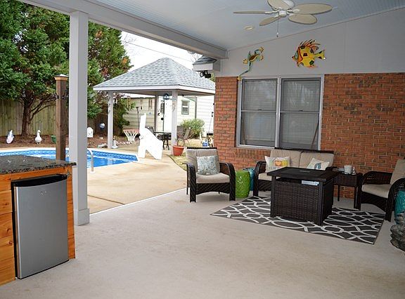1 story 4 BD 2 BA Brick home situated in an established s/d. Homes here rarely go on the market. Home features a split bdrm floor plan, large living rm, separate dining rm, large backyard w/ inground salt-water pool & outdoor kitchen. Outdoor kitchen has a built in grill, cabinets, counters & overlooks the large pool. Large covered patio + covered permanent gazebo. Sports pool. Firepit + 2 large storage buildings. Fenced Yard. Roof about 5-6 years. Arch Shingles. Large separate game/playroom.