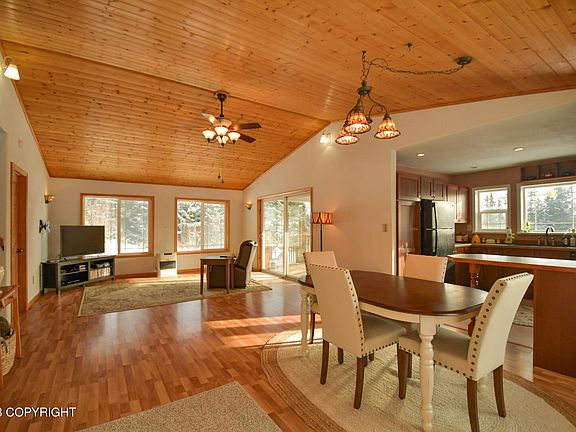 Welcome to this beautiful home on a spacious one-acre lot in the serene east end of Homer!This home features a spacious open living area with a tongue and groove vaulted ceiling, adding to the charm and character of the space. The large windows offer natural light and peek a boo views of Kachemak Bay and the surrounding mountains.The home has three bedrooms and two and a half bathrooms. The master suite, located on the main level, has an en-suite bathroom with a jetted tub and a separate shower, as well as a large walk-in closet. The two additional bedrooms are on the upper level and share a full bathroom. Upstairs, you'll also find an additional kitchenette, perfect for guests. Downstairs, you'll find a large family room with plenty of space to relax and unwind, as well as a half bathroom for your guests. Don't miss your chance to own this incredible property and experience the best of Alaskan living!