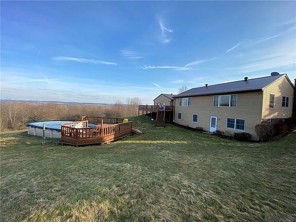 A spacious home owner's dream! This private and peaceful property includes a 3200 sqft home on 6 acres to provide the ultimate in tranquility. Enjoy the stocked pond, pool, large deck with scenic views, 2 car garage and shed. New roof in 2018. The interior includes a unique spacious layout with beautiful views. The perfect family home to relax and entertain.