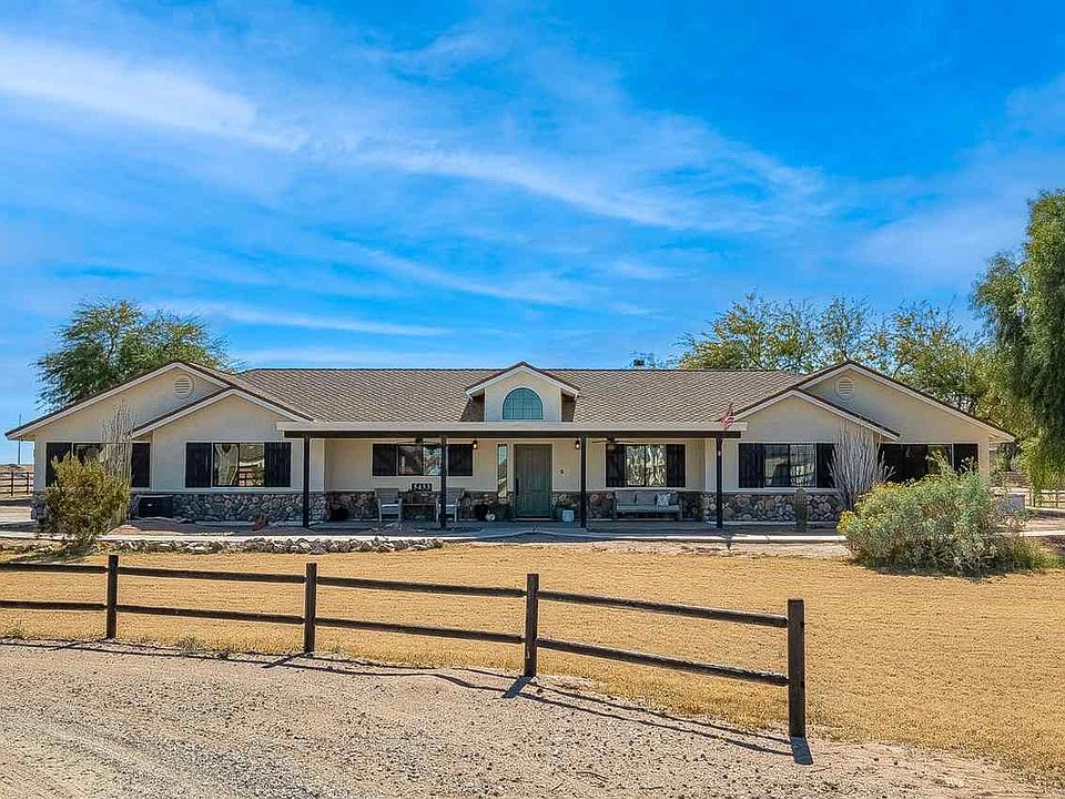 Charming modern farmhouse home on flood irrigated acreage in the Yuma counties! This 6 bed/3 bath +den gem of a home features all new LVP floors and fresh paint inside & out. Open concept living area, with vaulted ceilings, new fixtures, gorgeous fireplace and large windows, leading right into the beautifully updated kitchen. There is an attached 2-car garage & a pull-thru 4-car detached garage with 3/4 bath. New HVAC and wood fencing in 2022! VA assumable loan! Seller is licensed Realtor in AZ.