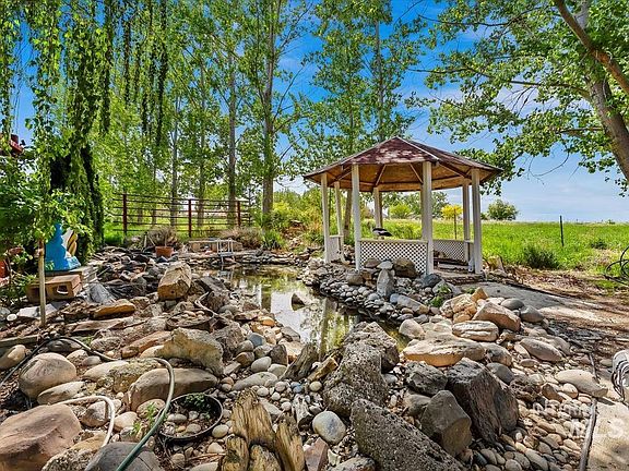 Welcome to this charming 1-acre property, conveniently located off HWY 95. This home has started a remodel to update several features- flooring, paint, cabinets and more!New insulation in the ceiling and new well pump, newer furnace. Roof is 6 years old.  There is a separate dwelling that offers potential 2 bedrooms, 1 bath, an open kitchen, and a cozy living room once completed. Enjoy the serene backdrop of farm land, fruit trees (apple, peach & plum), a garden, and a peaceful pond. 1 Car Garage/Shop with Electricity.  Embrace the perfect blend of tranquility and accessibility off the I-84 & US 95. Don't miss the opportunity to create your own oasis in this delightful home. Easy to Show
