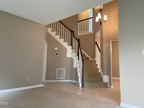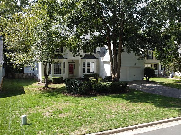 Located in Northwest Raleigh's Harrington Grove neighborhood, this beautifully updated home is a true gem! The downstairs features real hardwood floors, smooth ceilings, and crown molding in the back half of the house, creating an elegant and inviting atmosphere. Upstairs, both bathrooms showcase ceramic tile. The kitchen shines with granite countertops, stainless steel appliances, and updated cabinets. Fresh paint, newly cleaned carpets, updated lighting, and ceramic tile in the bathrooms contribute to a modern, move-in ready feel. The formal living and dining rooms boast charming bay windows, while the dramatic 2-story foyer welcomes you with a stunning turned staircase. The family room and kitchen both feature real hardwood floors. The vaulted primary suite offers a spa-like bath with an extended vanity, double sinks, and a spacious walk-in closet. Step outside to enjoy the refinished deck, concrete stoop, and storage shed, all complementing the fenced backyard. Plus, it's just a short 3-minute walk along HOA-maintained trails to the Harrington Grove Swim and Racquet Club (Separate Membership Required), which features a zero-entry swimming pool with a diving well, kids' playground, clubhouse, snack bar, and five lighted tennis courts. This home is truly updated to perfection! Only 30 minutes to Downtown Raleigh or Durham, and just 10 minutes to several grocery, dining, and shopping options. Refrigerator, Washer & Dryer convey. Listing agent is property owner.