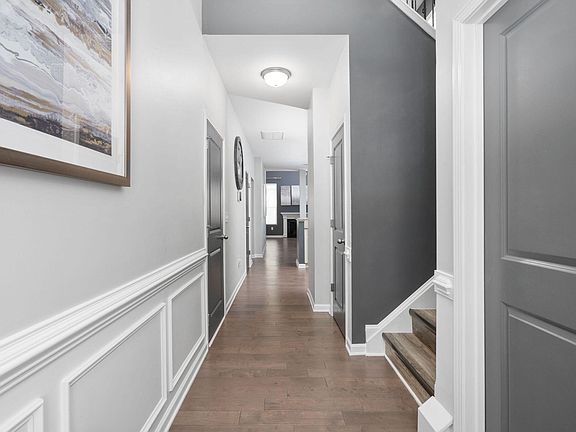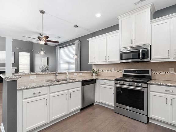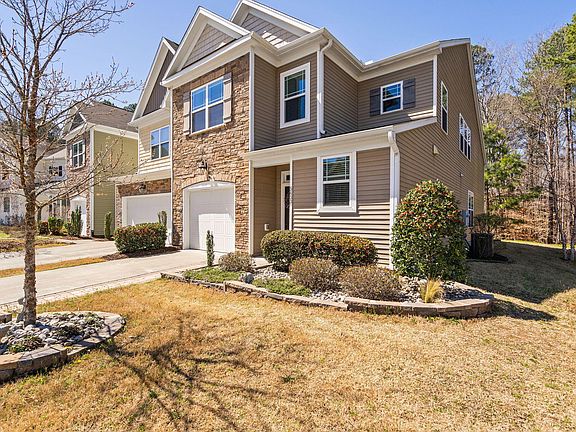 Don't miss your chance to own this stunning townhome, featuring a highly sought-after ground-level owner's suite in a desirable, private end-unit location. This luxurious home truly has it all, from an abundance of natural light streaming through multiple large windows to the thoughtful decorative details that make every space special. As you enter, you're welcomed by a grand two-story foyer with elegant wood floors and charming picture frame wainscoting. The kitchen is a true delight, offering pristine white cabinetry with a glass front corner cabinet door, a gas range for cooking, sleek granite countertops, and a spacious pantry. The wood floors seamlessly flow into the dining area and open-plan family room, creating a perfect space for entertaining. The family room features soaring cathedral ceilings and a gorgeous fireplace, framed by large windows that showcase the private, wooded backyard. The owner's suite, located on the main level, is both spacious and serene, with low-maintenance LVP flooring and a generous walk-in closet. The en-suite bath boasts a dual vanity with granite countertops, tile flooring, and a tiled, walk-in shower. Convenience is key with a roomy laundry room also located on the main floor as well as a generously sized half bathroom. The LVP staircase leads you to the second level, where you'll find two additional generously-sized bedrooms, each with their own vanity and sink, connected by a shared Jack-and-Jill bathroom with tub shower combination. The spacious loft overlooks the family room below, with beautiful wrought iron and wood balusters adding to the charm. This home offers exceptional privacy, backing to a tranquil, HOA-owned wooded lot. Enjoy your morning coffee or unwind in the evening on the screened-in porch or the paver patio - a perfect retreat for all seasons. This home is a true gem, featuring numerous upgrades such as plantation shutters, honeycomb blinds, contrasting painted interior doors and an Electric Vehicle Charging Circuit. Don't miss the opportunity to make it yours!