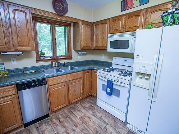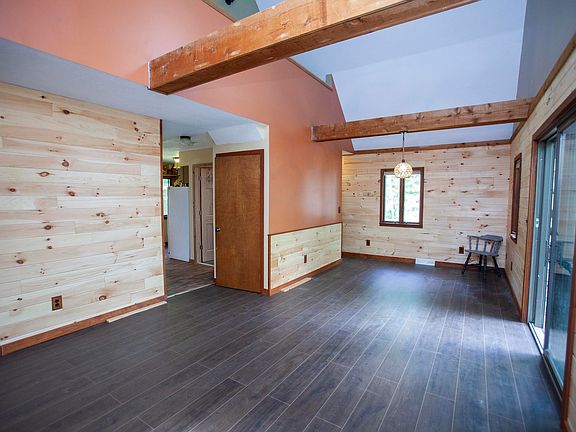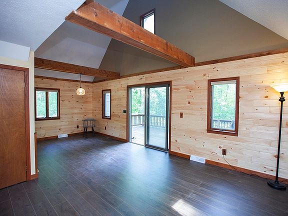 Private 4 acre oasis setting in a forest just down from the Pine River. Upstairs bedroom has a balcony overlooking backyard, fully equipped with outdoor sauna, outhouse, chicken coop, garden and fence. Main bedroom is centrally located next to the bathroom (newly remodeled!), kitchen, rear mudroom and living room with vaulted ceiling. Fully unfinished basement with 2 rooms, utilities and ready to be finished on 2nd room. Home is heated with propane and outdoor boiler. Garage is also heated with wood boiler and insulated with side workshop and outdoor storage. Country living is the place to be on your large front porch.