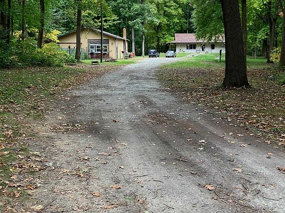 Unique opportunity to own this 4 bedroom 3 bath country home surrounded by woods all on 10 acres +/- Great family and friends gathering area in the pole barn that will hold 50-60 people with commercial kitchen, half bath and wood burning stove. Basement has storm shelter of all concrete for protection in inclement weather.