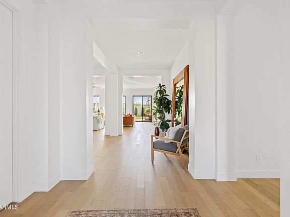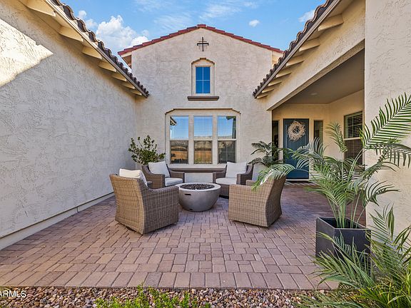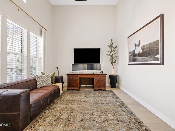 Professional photos on 10/30. You will not want to miss out on this luxurious, meticulously maintained and detailed home! The flooring is an engineered white oak wood and is absolutely stunning! Upgrades all throughout with tall ceilings! The kitchen boasts of stunning, staggered white cabinets, white quartz countertops, and white shiplap to match on the large T shaped center island and the backsplash. The living room has a custom fireplace with a beautiful wooden mantel and matching shelves. Custom light fixtures throughout and with white walls & black framed windows, this home is truly Instagram worthy. The backyard is perfect for entertaining with a huge covered patio, a basketball court and fake grass for low maintenance. Welcome to your dream home in the Estates at Eastmark!