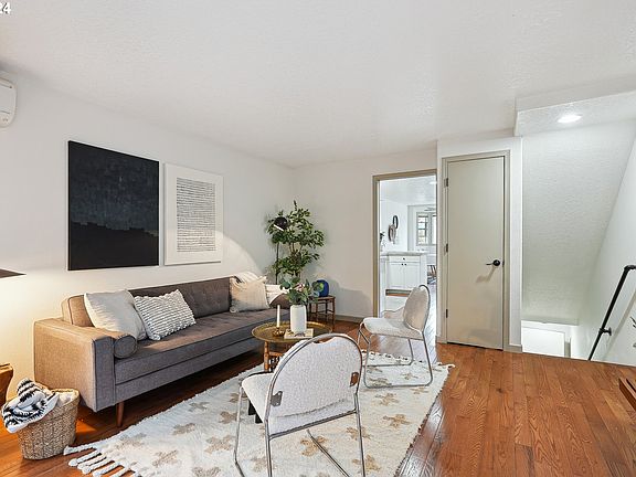 Welcome to your charming urban retreat in the heart of Portland's lively Brooklyn neighborhood! This three-story townhome offers a stylish and low-maintenance living experience. Enjoy the easy breezy flow from the eat-in kitchen to the separated living room. The top floor features two bedrooms each equipped with an ensuite and skylights throughout to let lots of natural light in. Take advantage of the efficient use of space, with plenty of storage options including multiple closets (the primary closet has been custom designed) and the double tandem style garage with loads of space, built-in shelving, and pegboard walls, ensuring all your belongings are neatly stowed away. Entertain with ease on the intimate back patio, perfect for hosting BBQ gatherings or enjoying quiet evenings under the stars. Inside, stay comfortable year-round with central air conditioning. With newer appliances and updated flooring in the main areas, this low-maintenance condo offers modern convenience. Embrace the urban lifestyle you've been dreaming of in this centrally located townhome in SE Portland. Schedule a viewing today and discover the joys of cozy living at its finest! [Home Energy Score = 10. HES Report at https://rpt.greenbuildingregistry.com/hes/OR10225950]