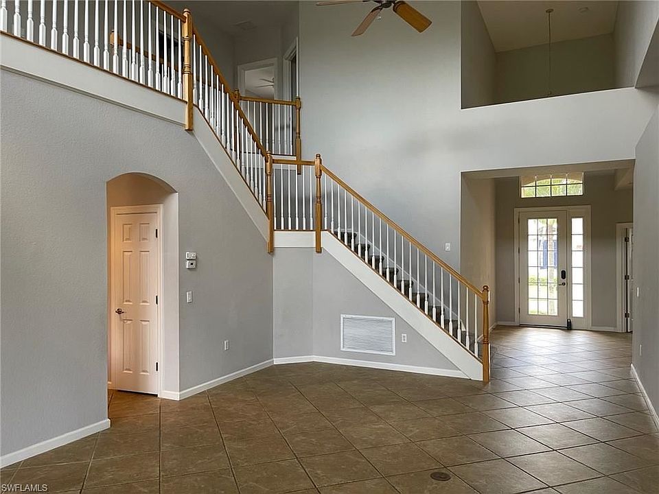 GREAT OPPORTUNITY NOW AVAILABLE DUE TO FIRST TIME BUYER'S COLD FEET. READY TO MOVE IN! GREAT SPACIOUS HOME WITH LOTS OF LIVING SPACE FOR EVERYONE! 3BR+DEN AND EXTRA LARGE LOFT AREA FOR GAME ROOM, TV ROOM OR EXTRA OFFICE SPACE. LARGE OPEN KITCHEN WITH BREAKFAST BAR, LOTS OF STORAGE IN LAUNDRY ROOM, GREAT MASTER BR SUITE AND BATH. TILE THROUGH OUT THE FIRST FLOOR (WOOD DEN), HUGE VOLUME CEILINGS. LOVELY LAKE VIEW FROM SCREENED LANAI. ALMOST NEW 2 ZONED AC UNITS. GATE COMMUNITY CONVENIENT TO EVERYTHING, COMMUNITY POOL, FITNESS AND ALL YOU LAWN CARE AND IRRIGATION WATER INCLUDED WITH LOW HOA FEES.