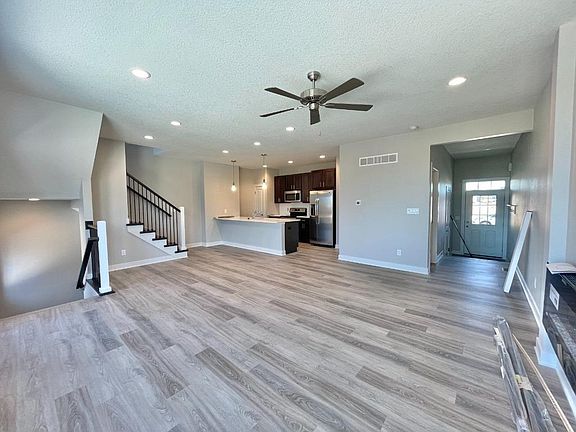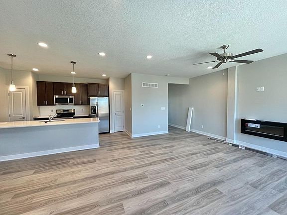Brand new Waterford Creek South Townhomes with a modern design. You'll love the open concept and the abundance of natural light and views from the large family room windows. Open kitchen with stained cabinetry, snack bar, quartz counters, pantry, stainless steel appliances (all kitchen appliances included). The kitchen opens to the dining area, deck, & great room to make this perfect for entertaining. Upstairs you'll find a loft perfect for a reading nook or office space. Upstairs is also the master bedroom with en suite bath & walk-in closet, two guest bedrooms, full bath, & laundry room. The finished walkout basement has daylight windows, family room, 4th bedroom, & full bath. Rounding out this quality built townhome by J Larson Homes is an association to take care of lawn and snow care, & Waukee Schools!