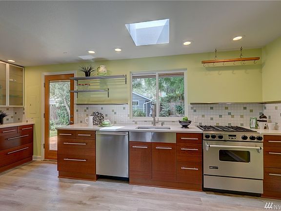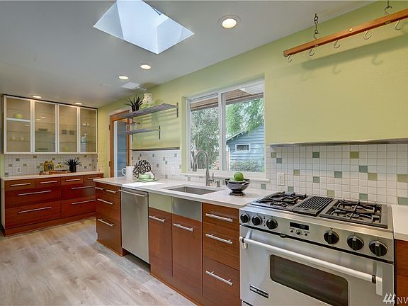 This home shines with its recent modern updates, open layout, peaceful backyard and great location! 2019 updates include: new roof, Luxury Vinyl Plank flooring throughout, Quartz countertops and stainless steel sink, new bathroom vanity, toilet, medicine cabinet and light. Gas fireplace, stove and tankless water heater. Fully fenced backyard with a deck and patio. Gardening beds and rain garden in front yard. Oversize 1-car garage. Close to Longfellow Creek, Camp Long, parks and bus lines.