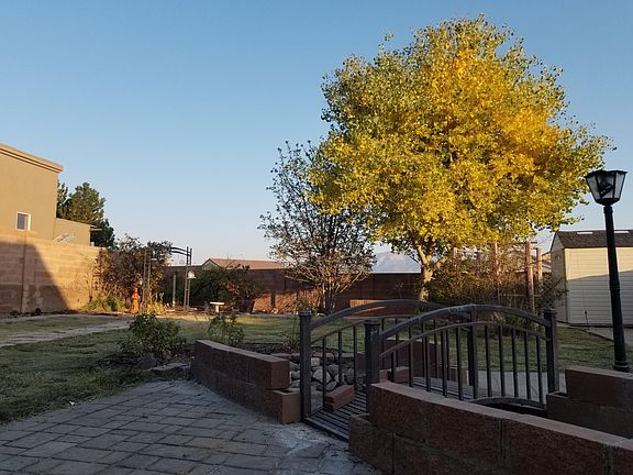 Newer carpet. Backyard lawn including apple tree, grape vines and lots of Rose's. You have a great view of the Sandias from the back yard and master bedroom balcony. Master bedroom, secondary bedroom and two full baths are upstairs. Granit kitchen counter tops. Two living / dinning areas. Small bedroom 1/2 bath downstairs. Conveniently located off NM 550. Only 40 minutes to Santa Fe. Two car garage with great storage. NO SMOKING. Water, Electric and Gas are paid by the Tenant. Trash is paid by landlord. The backyard lawn, Plants and trees require care. Bring your green thumb or hire someone. It is the tenants responsibility to care for the landscaping.