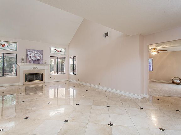 This stunning golf course view home delivers elegance from the first step of the entry to the resort style backyard! Light & bright kitchen includes gleaming granite countertops that catch your eye, while the island offers convenience. The kitchen opens to charming dining w/ a custom built-in hutch & beautiful wainscoting detail! Grand living room w/ dramatic soaring ceilings, designer tile flooring and charming fireplace. Separate family room w/ built-in wet bar, brick fireplace and views of the tranquil rear yard. Master suite has retreat style feel w/ a private deck perfect for morning coffee to enjoy the most amazing golf course views. Spa-style master bath w/ amenities including sunken tub and large closets. Additional upstairs room w/ deck to enjoy relaxing views. Other features include downstairs large bedroom & bath, large den/office w/ fantastic waterfall views (perfect for these quarantine times) and dramatic staircase! Additionally, this estate offers a resort style private backyard including a pool w/ rock waterfall, relaxing spa, grassy area, built-in gazebo w/ bar, relaxing sauna, possible RV & spectacular views!! This home offers immense privacy backing the 6th Tee of the beautiful Simi Hills Golf Course!