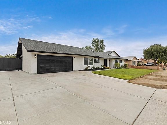 Single story ranch style home in the highly desired sky country community of Jurupa Valley. This beautiful 4 bedroom, two bathroom, horse property offers 1,500 sq feet of living space, over 20,000 sq ft lot, oversized back patio, neatly landscaped front yard, RV parking, extra long driveway enough to park up to 8 cars, wood barn, storage shed and two horse stables. Step inside and you’ll find a beautifully designed lay out with 4 bedrooms, one being used as an office. The upgraded kitchen features white cabinetry, quartz countertops, backsplash and new stainless appliances. New flooring throughout, base molding, two remodeled bathrooms. The living room includes a fireplace with quartz base, recessed lighting and much more. Come experience this magnificent home.