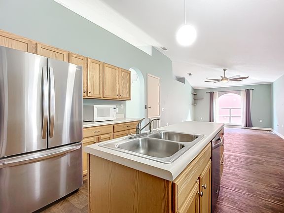 This 4-bedroom, waterfront home, nestled on a street that leads to a cul-de-sac is located in a highly desirable neighborhood, close to shopping, and The United States Naval Air Station just to name a few. This concrete block home with stucco features a newer roof (2022), new water heater, new HVAC system with UV germicidal light & upgraded filtration (2024), ensuring long-term reliability and energy efficiency. Step inside to discover a home full of character, including beautiful arches and niches that create an inviting and elegant atmosphere. The spacious kitchen is a chef's dream, featuring stainless steel appliances, with a refrigerator (2022) & two kitchen sinks one conveniently located in the island for added functionality.