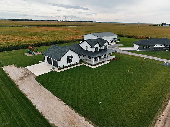 ARCHITECTURALLY APPEALING 1 YEAR OLD FARMHOUSE BALANCED WITH FUNCTIONALITY AND EASY TO LIVE IN, LOCATED ON AN ACREAGE SETTING. MODERN AND WARM APPOINTMENTS ARE THEMATICALLY MIXED THROUGHOUT THE HOUSE. LOTS OF WINDOWS PROVIDING NATURAL LIGHT; MAIN FLOOR PRIMARY SUITE; UNIQUE CEILING TREATMENTS. GOURMET KITCHEN W/DOUBLE OVENS, 48" GAS RANGE W/POT FILLER, 2 DISHWASHERS, FARM SINK, REFRIGERATOR, LARGE WALK-IN PANTRY & 2 ISLANDS. MAIN & BASEMENT LAUNDRY AREAS; ADDITIONAL GARAGE ACCESS FROM BASEMENT; STORM SHELTER; HIGH EFFICIENCY GAS FURNACE.