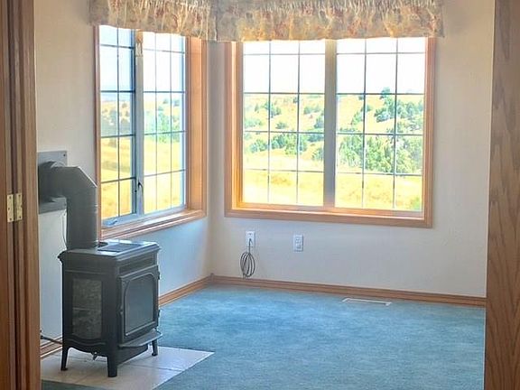 Wildlife in area great unobstructed views, pines, privacy. Ground Source heat pump & propane ! Lots of windows. Master Suite & 2 other bedrooms up stairs. 2 bath up. 4th Bedroom lower level, could be large family room. Main floor; Open kitchen & living area. Main floor w gas stove & powder bath. Formal & infor dining. Deck off kitchen overlooks 13.9 acres. powder bath. Daylight basement, 100% finished. Basement has kitchenette, covered porch. laundry off the garage. garage over sized 2 car. Horses allowed. Can build shop. Very private! Seasonal water running in coulee E of home.