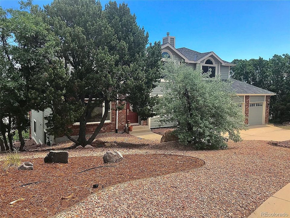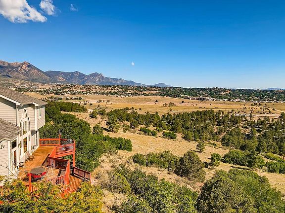 Stunning views of Pikes Peak and city lights with easy access to I-25. Walls of windows let you enjoy the dramatic views from almost every room. The main level houses the formal living and dining room, a gourmet kitchen with granite counter tops, center island, stainless steel appliances (incl. a 6 burner gas cook top), and a two story fireplace. Large glass doors open to a huge deck with views of Open Space below, and the city. Adjacent is the dramatic family room with fireplace. Double French Doors open to an over sized bedroom/office with direct access to a bathroom. On the upper level the huge master bedroom with large walk in closet and two sided fireplace is adjoined by an office as well as the beautifully updated master bath and boasts heated floors, separate shower, and freestanding bathtub. There are two additional bedrooms and a bath on this level. The lower level walkout opens to another huge, partially covered deck and offers lots of room for pool table, bar, games, theater, etc. New roof, two furnaces.