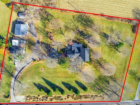 This beautiful spacious custom built, one owner, 3.35-acre, 4 bedroom 3.5-bathroom, 2712sqft. country oasis is perfect for anyone with a car/toy collection or for anyone running a business out of your home! This property features 4 freshly painted outbuildings. A 2-car 25'x45' detached garage that connects to a 20'x21' workshop, a 3-car 39'x34' barn that was built in 2017 and there is also a 20'x18' outbuilding and a 16'x20' carport. The kitchen has been remodeled and offers the perfect amount of cabinet and counter space! The countertops were custom wrapped in copper and are another example of the high-end taste/ no corners cut approach these owners took in remodeling projects. Beautiful hardwood floors run throughout the breakfast room, kitchen and dining room. This house was made for entertaining with its beautiful foyer with marble floors, a large living and family room featuring a gas fireplace for everyone to gather around in the colder months ahead. The second story offers 3 spacious bedrooms and a spacious owners suite with a large ensuite full bathroom. The main level office could be used as a 5th bedroom if needed. The semi-finished basement has a large rec room that is 25'x27' with its own full bathroom! The large glass enclosed back patio and the Hot Springs hot tub are also sure to be a hit. The roof on all the buildings and the house were replaced in 2021. Ac unit replaced in 2019. The electric was updated in the house and garage in 2017. Call to schedule your private showing today!