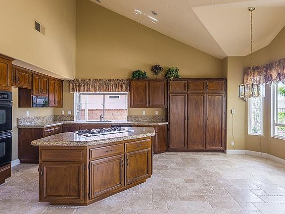 Welcome to this tremendously appointed city lights view home high in the hills of Yorba Linda! California-Casual is the theme of this incredible backyard featuring cozy outdoor fireplace, 5-hole putting green, built-in BBQ w/fridge, plus sparkling pool & spa, surrounded by colorful ledgestone planters * Meandering brick pathway leads to grand double door entry * New chisel-edged travertine flooring graces the entry and most of the downstairs * Formal living and dining enjoy soaring ceilings & interesting architectural details * Spacious granite kitchen offers warmly stained cabinetry, convenient center island w/5-burner range, double ovens & garden window * Casual dining nook takes in the incredible backyard views * Family room w/warming fireplace, built-in wine storage, plus slider to backyard fun in the sun! Desirable downstairs master suite w/pretty French doors to private patio, separate dual vanities, soaking tub & shower * Graceful staircase leads to upstairs loft, perfect for office or gaming, plus 3 additional bedrooms w/ceiling fans & mirrored wardrobes * Full double vanity bath plus linen storage here! * Whole house fan for each bedroom plus efficient solar system! * Three-car garage PLUS generous gated RV parking