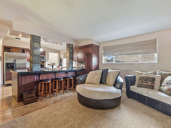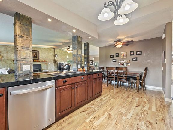 Move-in-ready, large, updated, well cared for home. The upper floor features a large living room with wood burning fireplace, gorgeous kitchen with stainless steel appliances, and lots of cabinet space, large master, remodeled bath w/whirlpool tub. The basement level has a large family room, office/laundry, tons of storage, 2 bedrooms with walk-in closets and a 3rd room without windows. Zoned A/C, a large two car garage, RV parking and storage shed.