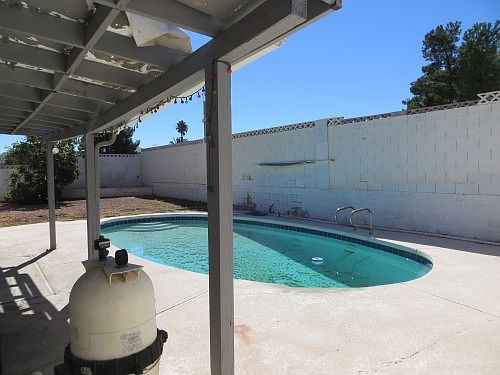Large front yard with shade trees. 4 bedroom home with new carpet and paint. Large living room that overlooks the front courtyard. Kitchen has some upgrades and family room has a brick fireplace. Master bedroom has a sliding glass door that leads to front courtyard. Backyard has a pool and large side yard.