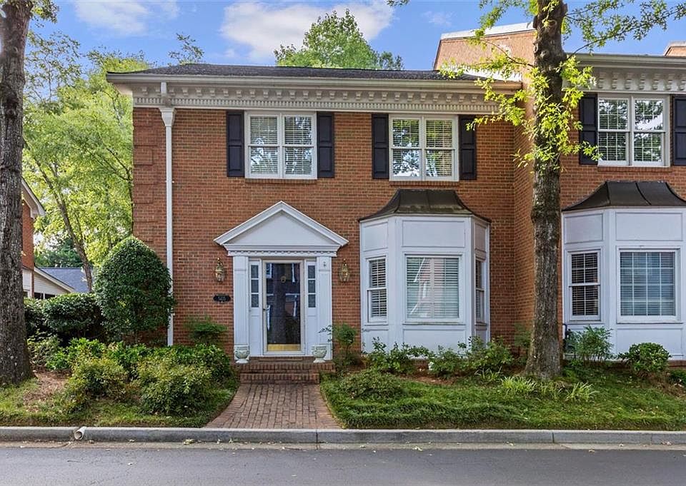SELLER TO PAY MONTHLY HOA FEE FOR ONE YEAR!!! Beautifully Updated Brick Townhome End Unit in sought after area in Dunwoody. Walk to popular shops and restaurants. The main level impresses with hardwood floors, a spacious Living room with a fireplace, an oversized Sun Room off the Living Room, an updated Kitchen with quartz countertops, and Dining area with a Bay Window accent. A large bedroom on the main level with a Bay Window and renovated full bath. Two car garage with custom shelving storage space. Upstairs is the oversized Primary bedroom with fireplace, sitting room, and private bath. The primary private bath includes a walk in shower and a separate bathtub. Additional large bedroom upstairs with a private bath. Enjoy the maintenance free landscaping and swimming pool. Dunwoody Country Club is nearby. Top rated Vanderlyn School District.