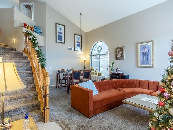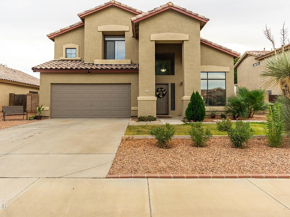 This beautiful Spanish style home features 2 stories, 3 bedrooms, 2.5 bathrooms and 2,236 square feet! Located in a great location close to entertainment, schools, and shopping! As you walk in this home you will notice the inviting tall vaulted ceilings and spacious formal room and dinning room! With an open design in the kitchen with stainless appliances, newly painted cabinets in 2019, kitchen island and granite countertops! Also included with this home is a large backyard with a grass area and a fenced off pebble tec pool paired with a gorgeous Ramada and spa! The loft offers a great bonus room for entertainment or an office space! The master bedroom offers a walk-in closet, direct access to the separate shower and bath, upgraded vanity and double sinks! Schedule a showing today!!