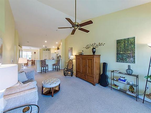 C.14811 - Come see this light & bright 2nd floor unit with vaulted ceilings and lake view that is steps from the local resident pool as well as the Carlton Lakes Master Club house. Enjoy a split bedroom floor plan, 2 full baths, covered parking space and a spacious kitchen that overlooks the family room and makes this unit wonderful for entertaining guests. Carlton Lakes is a North Naples gated community with tennis courts, walking paths, bocce courts, fishing pier, club house with fitness room, 60 ft lap pool & spa. This unit is sold with a 1 year home warranty for the new buyer.