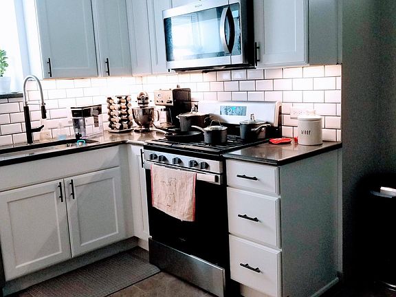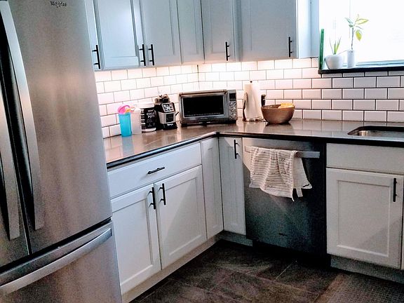 - A completely updated kitchen with quartz countertops, stainless steel appliances (dishwasher & microwave), and generous cabinet and counter space