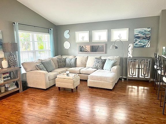 Are you still Florida dreaming? Well wake up! Your dreams are about to come true! Buy in this Fairy Tale neighborhood, with this like a model home an absolutely adorable dreamy Doll house, that is complete with Lake views, where you can sip drinks on your front porch and commune with nature, while your neighbors are shoveling the winter snows. Gated and a pristine Riverfront community, which was created by an award winning builder, wait and see this well kept secret! Neighborhood amenities include: a heated resort style community pool and spa, outdoor kitchen, 2 dog parks, nature trails, fishing pier and large lakes. Upgrades include, recessed lighting, a great kitchen with breakfast bar, closet pantry, upgraded appliances, corian countertops that overlook the family room, making entertaining a breeze. The master bedroom is spacious with a large walk in closet, tray ceilings, and tiled floors, the 2nd bedroom for guests is light and bright. The 2 car GARAGE is located in the rear of the house and the hallway has bi-fold doors that open to a separate laundry area. Being five minutes to I75 and close to shops and beaches do not delay! Take note, located near the end of a Cul de sac!