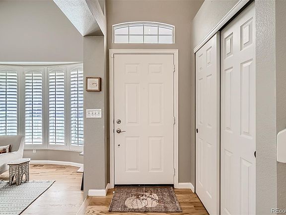 Welcome to your charming oasis in the heart of a peaceful neighborhood! This delightful 5 bedroom, 4 bathroom home is a haven of comfort and privacy. The home boasts a private backyard retreat with an inviting two-tier trex deck. Enjoy your morning coffee in tranquility as you gaze upon the serene backyard from the hot tub. New roof and new exterior paint in 2024. The covered front porch welcomes you, setting the stage for what awaits inside. Upon entering, you'll be greeted by a light and bright living room and dining room, casting a warm and inviting atmosphere. Beautiful hardwood floors seamlessly flow through the main and lower levels. Descending to the lower level, you'll discover a spacious family room that continues the charm with hardwood floors and a wood fireplace. A new sliding glass door provides easy access to the back deck, making it a perfect space for relaxation and entertainment. The kitchen offers an eat-in space and was completely updated in 2020. Another sliding glass door leads to the deck, enhancing the indoor-outdoor flow for al fresco dining. Upstairs, the four bedrooms offer personal space for everyone, with the primary bedroom set slightly apart down the hall. The primary bedroom features cathedral ceilings and is adorned with elegant plantation shutters, providing an ambiance of luxury and privacy. It was completely updated along with the 5-piece bathroom in 2020. The walkout basement offers a versatile bonus room that could serve as a game room, family room, or home office. The home offers ample storage including a standing-height crawl space off the furnace room, perfect for all your storage needs. The laundry area is finished and comes with a utility sink, cabinets and a storage closet. The HOA takes care of common area maintenance and snow removal allowing for a hassle-free lifestyle. The home's location is ideal, within walking distance of the picturesque Peakview Park South and close to Peakview Elementary School.