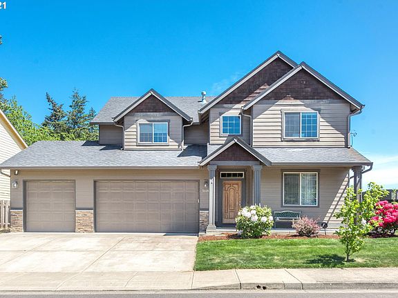 This beautiful South Salem home is located just steps from Wes Bennett Park and features custom cabinetry, a huge bonus room with vaulted ceilings, and a master suite on the main with a walk-in shower and double vanity. The dining room slider opens up to a fully fenced yard with a large covered patio that is perfect for entertaining guests. This is a must see Aspen Plan home by Pacific Construction.