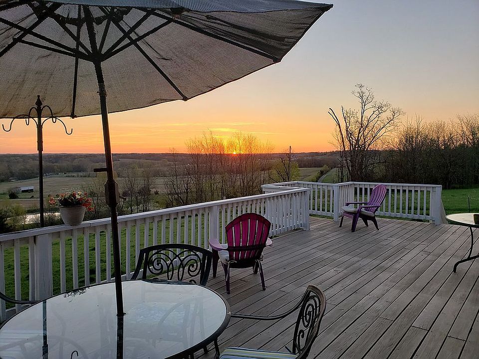 Beautifully maintained custom ranch featuring breathtaking views of the valley & sits on 33 gorgeous acres. The spacious open-concept main living area features oversized windows for taking it all in. Sip morning coffee & enjoy sunset views from the huge deck. The custom kitchen features shaker cabinetry, stainless appliances and abundant counter space. The split bedroom floor plan features two walk-in closets in the master suite and a main floor laundry. Full walkout basement with more windows to take in that gorgeous view. This one-owner, full brick home has a new roof, geothermal cooling system and an efficient ground source heat pump. Fencing and a 2400 square foot barn with full concrete floor and custom stalls makes this property horse-ready. There are 4 finished rooms within the barn including a bathroom making it perfect for a home business or guest quarters. Fantastic location only 9 miles South of Hannibal and 2 easy miles west of Highway 61.
