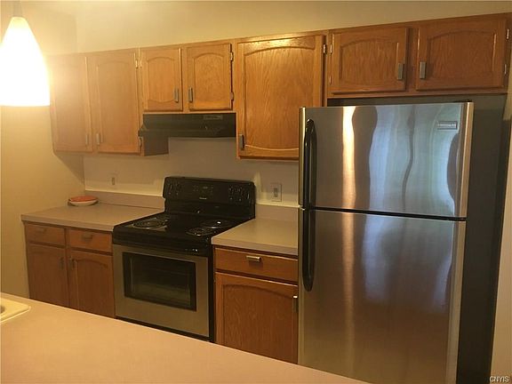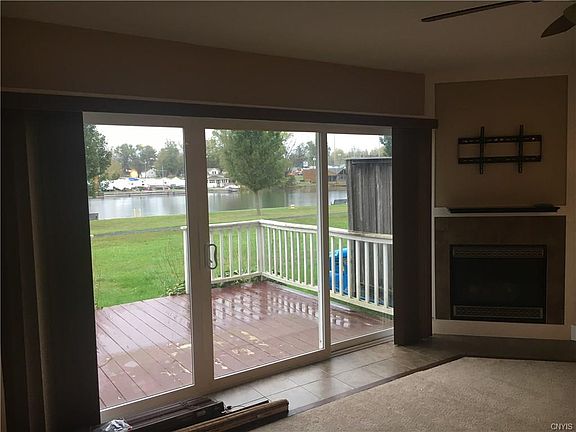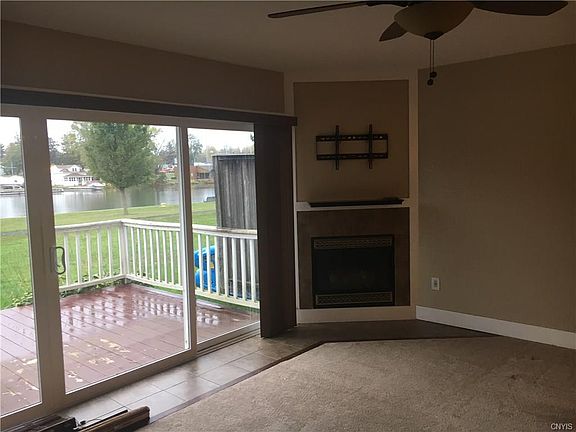 Peaceful canal setting frames this updated 2 bedroom 1 1/2 bath townhouse with 1 car garage. Open great room with fireplace and sliding glass door to deck overlooking Oneida River - great for the water enthusiast. Gorgeous updated full bath. Master Bedroom with sliding glass door to balcony overlooking the water plus second bedroom with den area. First floor laundry hook ups. Lawn maintenance and snow removal included in rent.