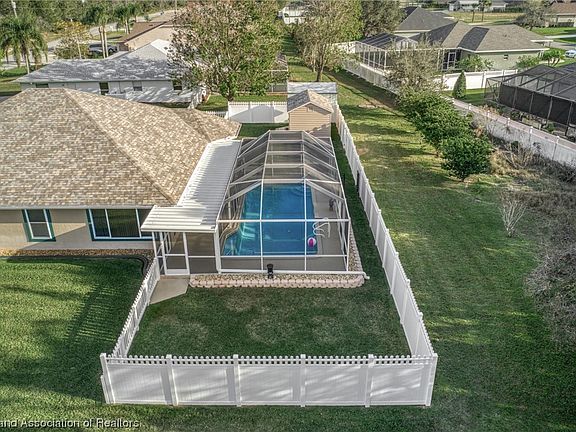 Spacious POOL home is perfectly manicured and located in Sun N Lakes, a golf course community. No HOA in this section. So many upgrades have been added to this home. The exterior will get your attention as soon as you pull into the driveway. Custom painted drive way, concrete edge around all landscaping, well irrigation for watering your manicured lawn. Rain gutters around the whole house. New roof on home and on large shed in the back that matches the house perfectly. New solar panels to heat the salt water pool. Large covered lanai to sit and enjoy your beautiful fenced in back yard. Even has a screened in front entry and skeeter beater on garage door.