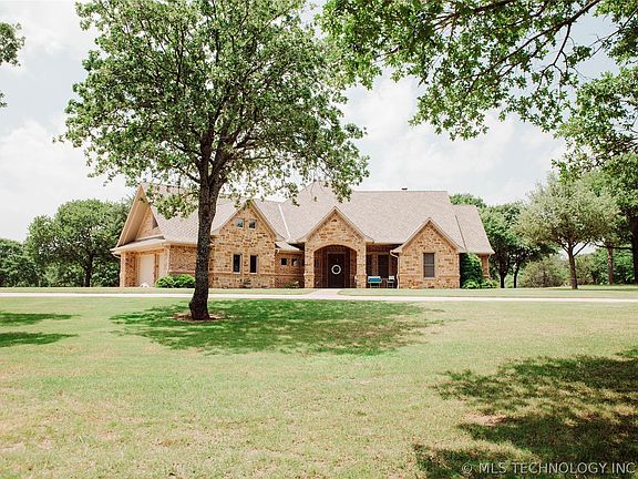 The lake home of your dreams... Rare Lake home in the upscale GATED neighborhood of Texoma Landing. When you pull into the driveway you will notice a concrete circle drive entrance. Stamped concrete walkways. Home sits on a large 2-acre lot. This home has many custom features and is move in ready. When you walk in you will notice beautiful 2-inch red oak wood plantation shutters all throughout the home with Anderson windows Hardwood floors that are jaw dropping. A big office for plenty of workspace.. Quartz countertops throughout. Relax in the early mornings on the back porch with a cup of coffee and look at the beautiful mature trees, and some wildlife. Just when you think this cannot get any better...Short golf cart ride to your PRIVATE BOAT SLIP that is being sold separately with the home. The neighborhood has a community fishing pond that is stocked with fish, and ready for fun times with the family. Very rare piece of property that you truly do not want to miss. Call me today to schedule your private showing.