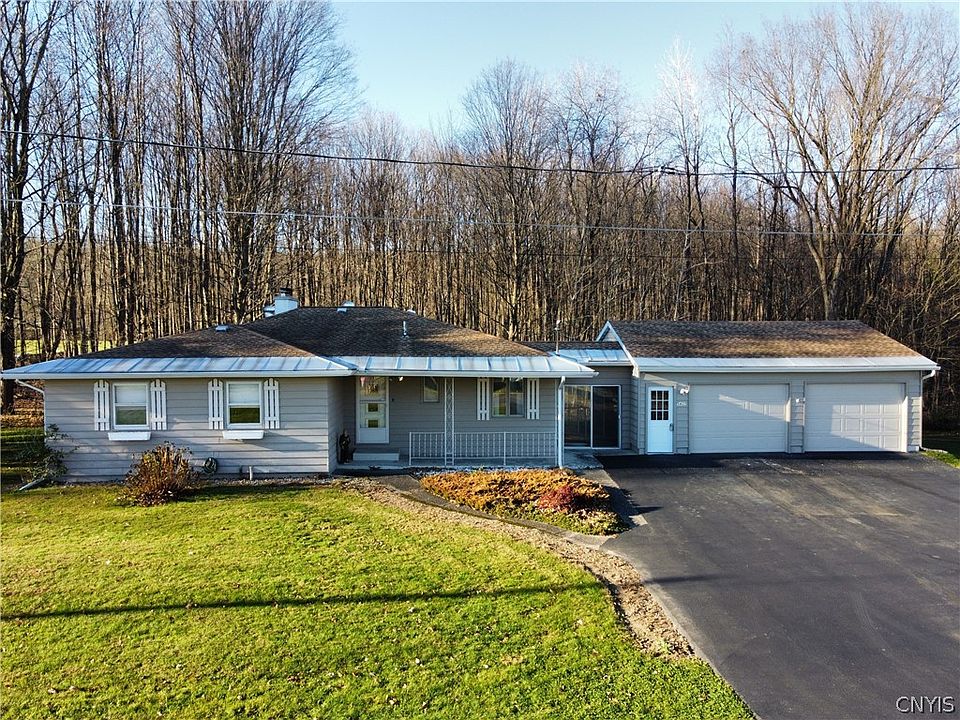 This is a wonderful ranch in the Town of Lee with 3 bedrooms and 1 1/2 baths on a double lot. Nice front entry with slate flooring. This home features a galley kitchen with formal dining room. The generous living room features a beautiful stone fireplace and overlooks the private wooded backyard. Hardwood floors throughout are in beautiful condition. All 3 bedrooms are very nice sizes. Partially finished basement with a fireplace and bar area for entertaining. This home has an oversized insulated garage. There is also a 3rd garage overhead door leading to the backyard. Plenty of storage for cars, toys and tools! Don't miss this great ranch if you are looking for country living just minutes from amenities. Stokes Elementary School.