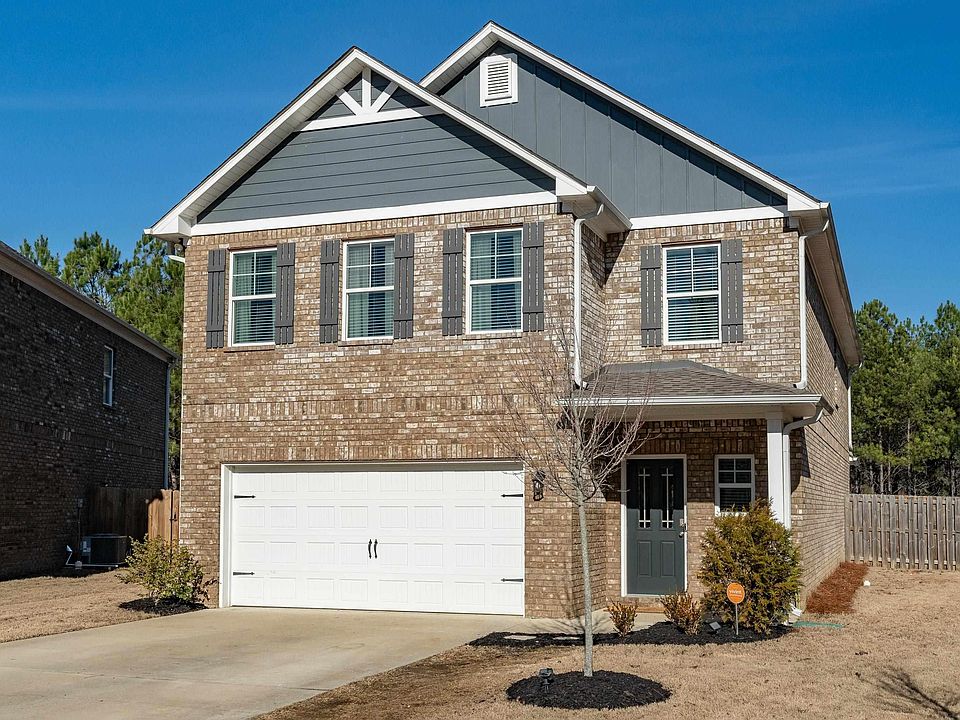 Come home to a beautiful 2 story home located at the end of the street in a cul-de-sac! Ready to move in and only 2 1/2 years old, this 4 bedroom 3 bath home is your next stop. Foyer opens up into the main living area encompassing a well appointed kitchen, dining room, and living room. A wall of windows allows plenty of natural light and a great view of the large flat, fenced back yard. One bedroom is downstairs along with a full bath. Upstairs, there are two additional bedrooms each with a custom touch of accent walls - one with a rock wall! The master bedroom and bathroom are at the end of the hall with a cozy nook/study just outside the door. Spacious enough for a king sized bed, the master bath features a garden tub with a separate shower. Don't miss your chance - put this at the top of your list.