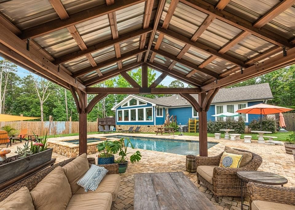 **$15,000 Credit Towards Kitchen Upgrades!** Stunning Craftsman Custom Home with no details spared & plenty of parking for RVs or extra vehicles! You will enjoy peaceful living on a well manicured 5+ Acre Lot featuring a New Pool with Jacuzzi & Pool House, New Interior & Exterior Paint, New Septic Tank and so much more. Gorgeous custom details throughout interior and exterior of home including refinished hardwood floors, tongue and groove ceiling, gorgeous kitchen with custom cabinets, beautiful tile work, SS appliances package & large island. Spacious family room with raised ceiling with an adjoining separate dining room, that's perfect for entertaining. This home provides amazing outdoor space with multiple covered porches with T&G ceilings, and an open back porch that's perfect for grilling. Stunning In-ground pool & hot tub with a pool house that provides a perfect place for relaxation in the hot summer days that overlooks a private & gorgeous lot. There is also "She-Shed" that's been connected to plumbing, sewer and ready for use. This stunning home features 4 large bedrooms with 3.5 gorgeous baths. Master retreat with raised ceiling, hardwood floors & beautiful chandelier overlooks a stunning master bath with a sliding barn door, custom tile work with heated floors, dual control shower with floor to ceiling gorgeous tiles, relaxing garden tub & a new walk-in closet. Huge secondary bedrooms with hardwood floors & carpet, private updated en-suite and Jack & Jill baths, gorgeous fixtures & abundance of natural light. Home has a circular driveway and a huge parking pad that provides ample room for parking for family and friends. Don't miss your chance on this truly one of a kind custom home, that you will enjoy for years to come!