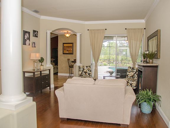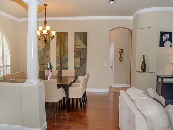 AWC - Taking Backup Offers MULTI OFFERS, H&B DUE by 3/24, 6pm, if still active please feel free to show/submit. Welcome to the pristine enclave of Lakeshore Estates. The neighborhood is very sought after due to it's quality, location and schools. This stunning, four bedroom, three bathroom pool home features countless upgrades that are sure to impress. Your eyes will instantly be drawn to the crown molding, rounded wall-corners, soaring ceilings and remarkable hardwood floors. There are spectacular views of the saltwater, solar-heated pool and conservation area throughout the home. Pass through the astonishing columns and you'll notice the kitchen's stainless steel appliances, center island and breakfast nook. The kitchen is very open, inviting and is perfect for entertaining guests. There is a built-in surround sound system in the family room along with sliding plantation shutters. In the master suite features a trey ceiling, reading space, two spacious walk-in closets, two bathroom vanities, a garden tub and a huge separate shower. The laundry room has tons of storage space, a sink and comes with the washer/dryer. There is also a bonus office space, three spacious bedrooms, a water softener and a gas hot water heater! Being the focal point of the home, the pool area has many features. Some of them are: an eating space, a covered patio space and a deck that's perfect for grilling. You'll also observe built-in, wrap around benches in the pool. Gardenias and Fig Trees surround the pool. The grill and patio furniture also stay.