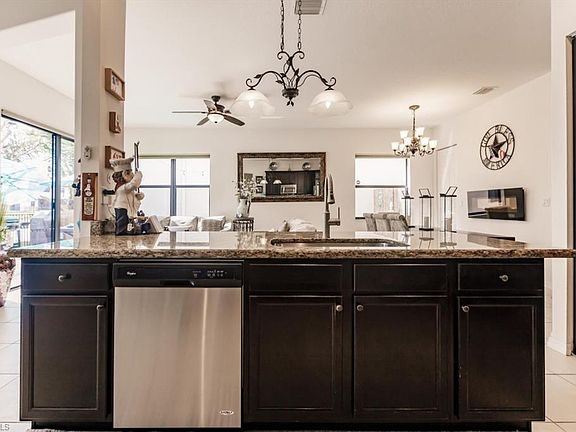 This home will not last long with all the added features and upgrades! This lake home features 3 bedrooms and 2.5 baths with many upgrades such as a farmhouse sink, crown molding on kitchen cabinets, an electrical fireplace, and so much more you must see. All bedrooms are located on the 2nd floor, and the living space is on the first floor. Enjoy over 1900 sq. ft of living space and a beautiful fenced-in backyard with your own stock tank pool for the little ones. all while drinking wine and eating BBQ overlooking the lake. Ave Maria has everything you are looking for, from a clubhouse, community pool, tennis, golf courses, and you can enjoy the beautiful scenery throughout the natural preserves in the community.